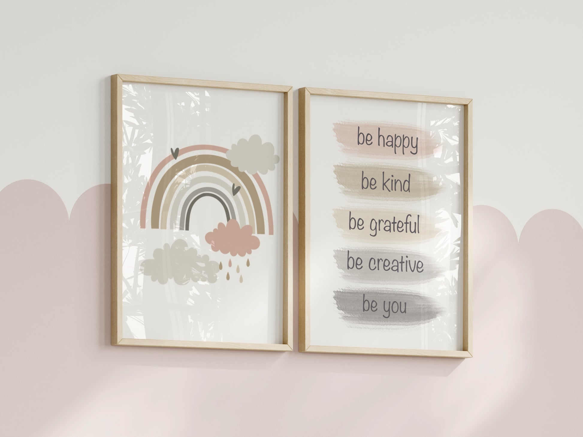 Set of two neatrual & pink rainbow affirmation prints
